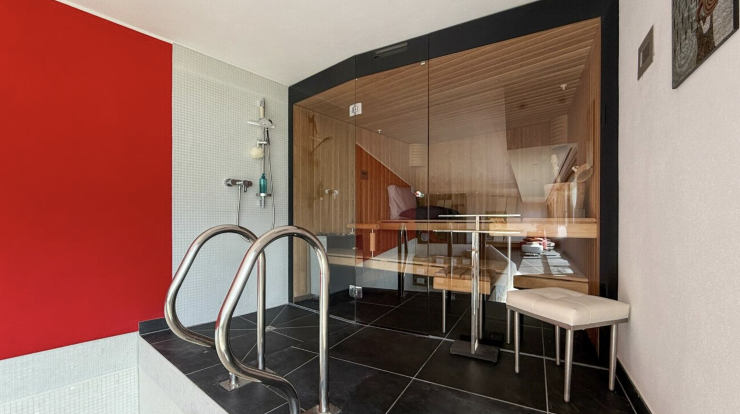 Für Wellness und Erholung sorgt derprivate Spa-Bereich mit Sauna und Indoor-Pool. Die hochwertige Sauna befindet sich in ausgezeichnetem Zustand und eröffneteinen traumhaften Blick auf den See. Derangrenzende Indoor-Pool überzeugt durchseine besondere Flexibilität: Dank dervollständig öffenbaren Schiebetür-Glasfront lässt sich der Poolbereich nahtloszum Außenraum erweitern. So entsteht eineinzigartiges Badeerlebnis, das sowohl imSommer als auch im Winter vollumfänglichgenutzt werden kann.